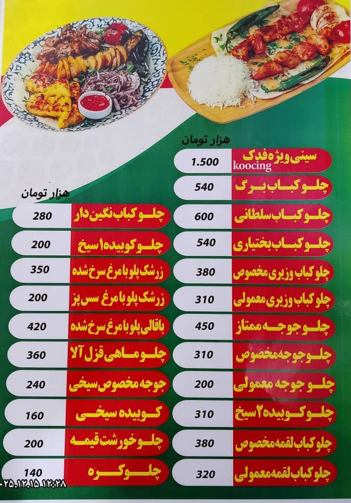در مجموعه ما، بهترین غذاهای سنتی ایرانی با تازهترین مواد اولیه و طعمهای اصیل تهیه میشود. از خورشتهای خوشطعم گرفته تا کبابهای آبدار، ما همواره در تلاشیم تا تجربهای لذتبخش و به یادماندنی از آشپزی ایرانی برای شما فراهم کنیم. با منوی متنوع و خدمات سریع، شما میتوانید از طعمهای بینظیر ایرانی در هر زمان لذت ببرید. سفارش آنلاین و تحویل درب منزل هم برای راحتی بیشتر شما فراهم است.